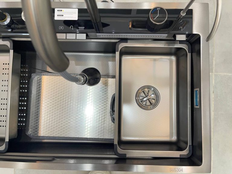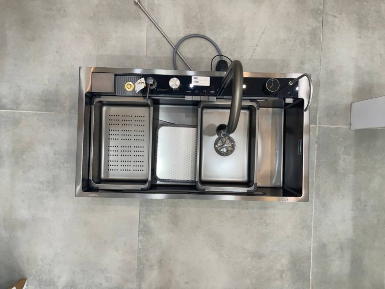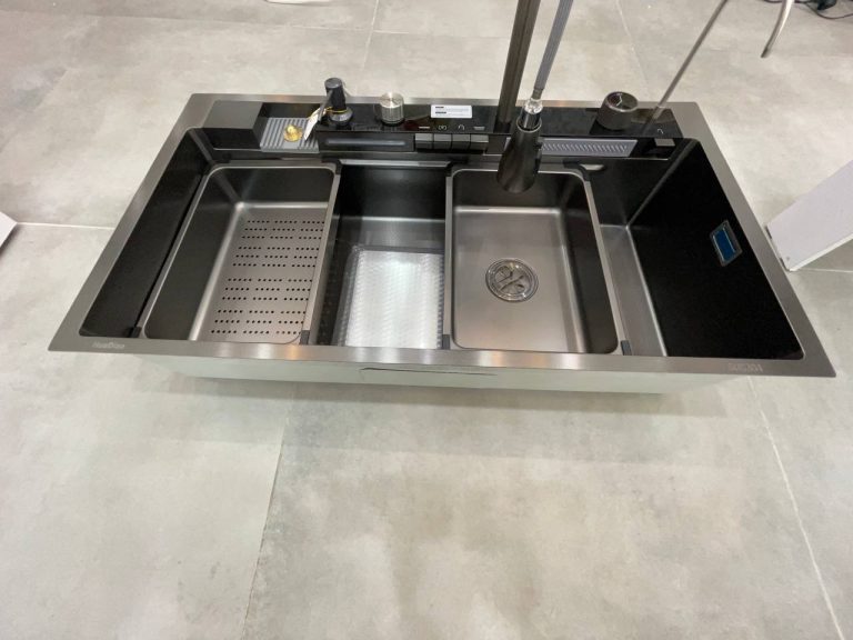 این سینک آشپزخانه لوکس پیانویی با نمایشگر دیجیتال و چندکاره هوشمند آبشاری افزودنی عالی برای آشپزخانه مدرن شماست.