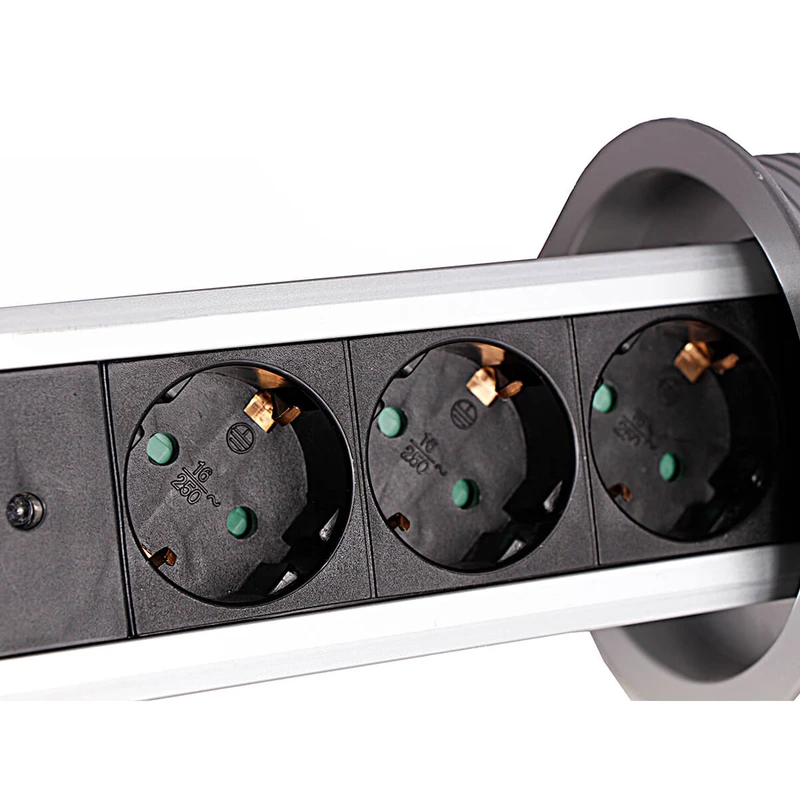 پریز تو کار الکترا 10018 3 سوکت برق محافظ نوسان برق طراحی اسانسوری ابعاد محصول (سانتی متر) : قطر : 11.3 – ارتفاع : 26 ابعاد برش (سانتی متر) : قطر برش : 10