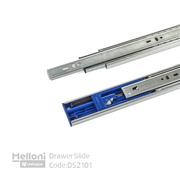 ریل ساچمهای آرامبند DS2101 ملونی یکی از پرفروشترین و محبوبترین ریلهای کشویی است که به لطف مکانیزم **پمپی (Soft Close)**، عملکردی بیصدا و نرم را هنگام بسته شدن کشو فراهم میکند. این ریل با طراحی سهتکه، امکان باز شدن کامل کشو و دسترسی آسان به کل فضای داخلی را فراهم میسازد. مناسب برای استفاده در کابینتهای آشپزخانه، کمدهای لباس، کشوهای دکوراتیو و … با کاربرد روزمره.
