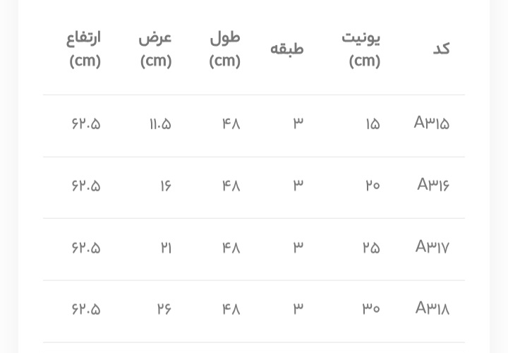 دارای تنوع در سایزهای مختلف عرض و ارتفاع یونیت