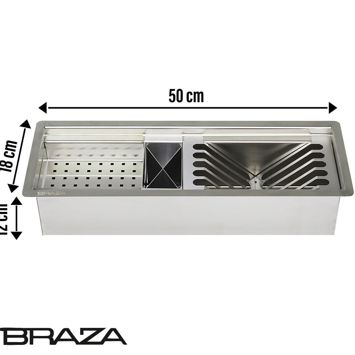 آبچکان توکار برازا در چند ابعاد مختلف که شامل ۵۰ . ۷۰ . ۸۰ . ۹۵ . ۱۱۴ سانتیمتر به عمق18 سانتی متر با ارتفاع 12 سانتی متر است.